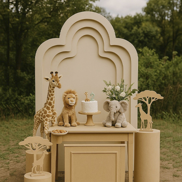 We design and manufacture custom wood structures for events such as backdrops, props, stage designs, furniture, and decorative elements for commercial spaces and special projects. Each piece is built to match the identity of the brand or event.